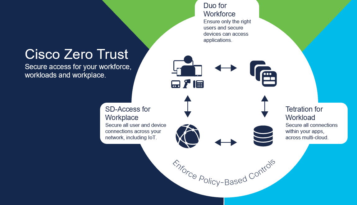 L’approccio pratico di Cisco a Zero Trust si attua attraverso 6 importanti passaggi.