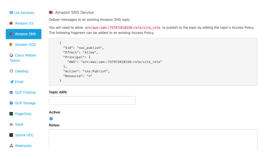 La soluzione Stealthwatch Cloud di Cisco offre integrazioni native per ogni situazione, dalla posta elettronica al syslog passando per le notifiche del sistema di chat, mentre sono presenti anche funzionalità di integrazione diretta con i servizi AWS Simple Notification Services o SNS.