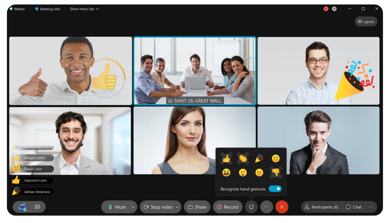 Per coloro che presentano riunioni, la tecnologia Immersive Share e Gestures consentirà una condivisione più dinamica dei contenuti nelle riunioni virtuali e grazie a Webex AI verranno fornite reazioni e feedback in tempo reale utilizzando il linguaggio naturale del corpo dei partecipanti alla riunione.