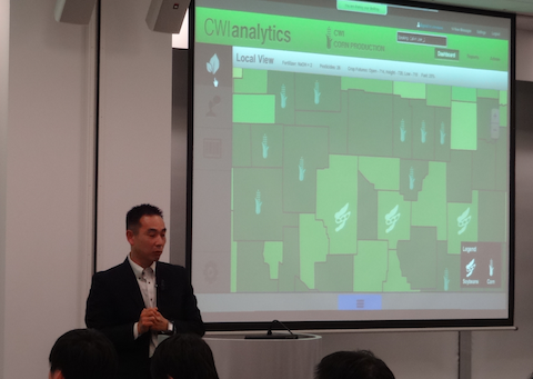 IoE の活用例を「記録」「監視」「制御」「探索」「予測」「コラボレーション」のそれぞれの観点から具体的な可能性を説明しました。さらにアメリカのトウモロコシ農場〜コーラの製造販売までのバリューチェーンにおいての活用デモがビデオで公開されました。