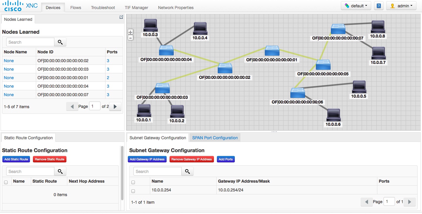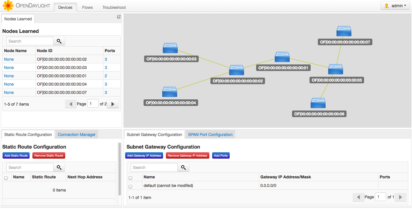 以下、OpenDaylight コントローラと OpenDaylight をベースでは業界初市場投入となる Cisco Extensible Network Controller (XNC)のGUIを比べてみます。