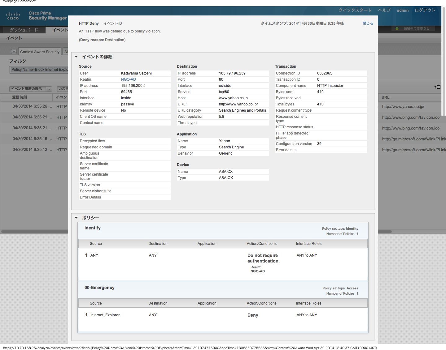 Cisco ASA 5500-X シリーズ アプライアンスにライセンスで追加できる次世代ファイアウォール機能(製品名:Cisco ASA Next-Generation Firewall Services)でも、同様にユーザ エージェント オブジェクトが作成でき、これをポリシーに簡単に設定することができます。この機能を使って IE による通信をブロックするという対応策も実施可能です。