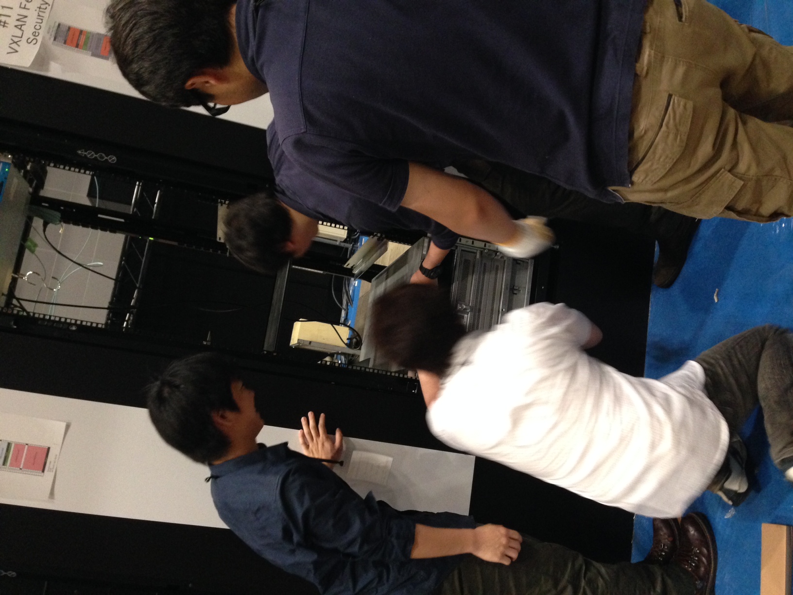 5月30日よりホットステージが始まり、シスコ エンジニアは連日、幕張メッセで鋭意、セットアップ、トラブルシュート、NOC(Network Operation Center)との全体ミーティングに取り組んでいます。