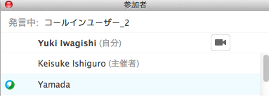 WebEx の緑色のロゴがボールに見えるために主催者とプレゼンターの間のやり取りで「ボールもらえる?」「ボールもらったかな?」「あれ、自分にボールがないよ」と表現します。言葉のキャッチボールのボールみたいですね。