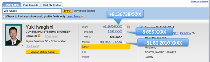 Web でのディレクトリ実装は便利なのですが、一点忘れてはいけないことがあります。それは、「そのページが日本中さまざまな地域、場所から参照される」ということです。シスコのように、「さまざまな国からグローバルで参照される」こともあるでしょう。したがって、電話をかける際には、社内から内線電話のこともあれば、外線を経由する場合、携帯電話を使っている場合、さらには国際電話になる場合さえあります。つまり、前の例で示したような「2001」だけでは電話がつながらないことのほうがが多いのです。