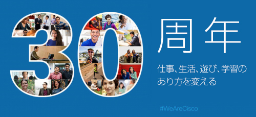 創業当時から今日まで、シスコのビジョンは変わっていません。それは、世界中の人々の仕事、生活、遊び、学習のあり方を変え、よりよい世界をつくる助けになることです。これからシスコの創立 30 周年をみなさまと一緒に祝いたいと思います。このセレブレーションキャンペーンは、2015 年を通して続きます。その間も私たちはアジア太平洋各国でのシスコの役割をしっかりと考えていきます。今後お届けするシスコからのニュースなどに引き続きにご期待ください!
