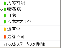 相手から見たときの表示は「プレゼンスステータス@ロケーション名」になります。