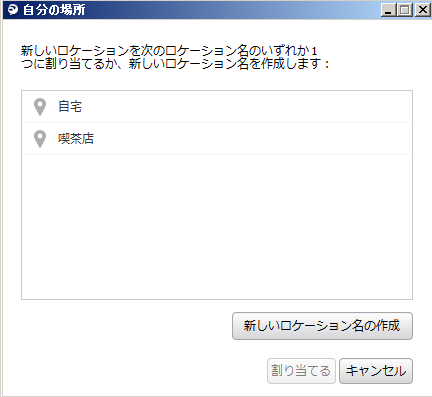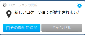 この「今いる場所」をプレゼンス以外の専用項目を使って連絡先に通知するのがロケーション機能になります。Cisco Jabber がネットワーク上の場所を検知して、自動的に新しい場所なのか、すでに利用したことのある場所なのか判別します。新しい場所であれば「自分の場所に追加」をクリックすることでロケーションを割り当てられます。