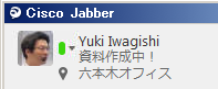 Cisco Jabber のプレゼンスステータスは表示情報が自分で入力できる機能「カスタムステータス」があり便利です。自分の心の主張を叫んだり、今している作業を入力するなどに使われます。また、典型的な使われ方の一つに、「今いる場所」を通知するのに使われるケースがあります。