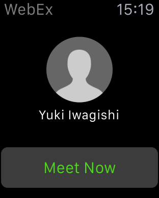 Apple Watch とペアリングしているスマートフォンに WebEx for Meetings 7.1 以降をインストールすると、Apple Watch で WebEx が利用できるようになります。使い方は簡単です。Apple Watch 上のアプリの一覧画面に表示されている WebEx のアイコンを選択してください。インスタント ミーティングの開催画面が表示されますので、それをタップするだけで、いつでもどこからでも会議を開催できます。