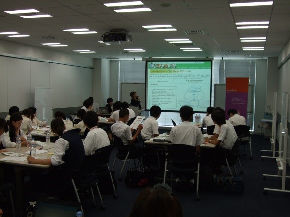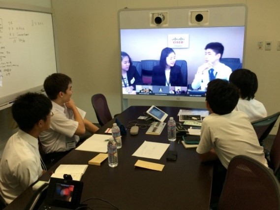 これまでも TTBiz のなかでテレプレゼンスが活用されてきました。ただし、キックオフのなかの全体セッションのみで、その後のチームセッションは WebEx を使っていました。今年は、シスコのオフィスのなかにテレプレゼンスが利用できる会議室が増えたこともあって、チーム セッションにもテレプレゼンスを利用することができました。高校生たちはテレプレゼンス初体験。キックオフ ミーティングからチーム内のフェイスツーフェイスでのコミュニケーションが可能となったのです。顔を見ながら会話ができるということで、電話では気後れしてしまう英語での議論でも活発に意見を出し合うことができ、チームワーク構築が格段にスムーズになりました。