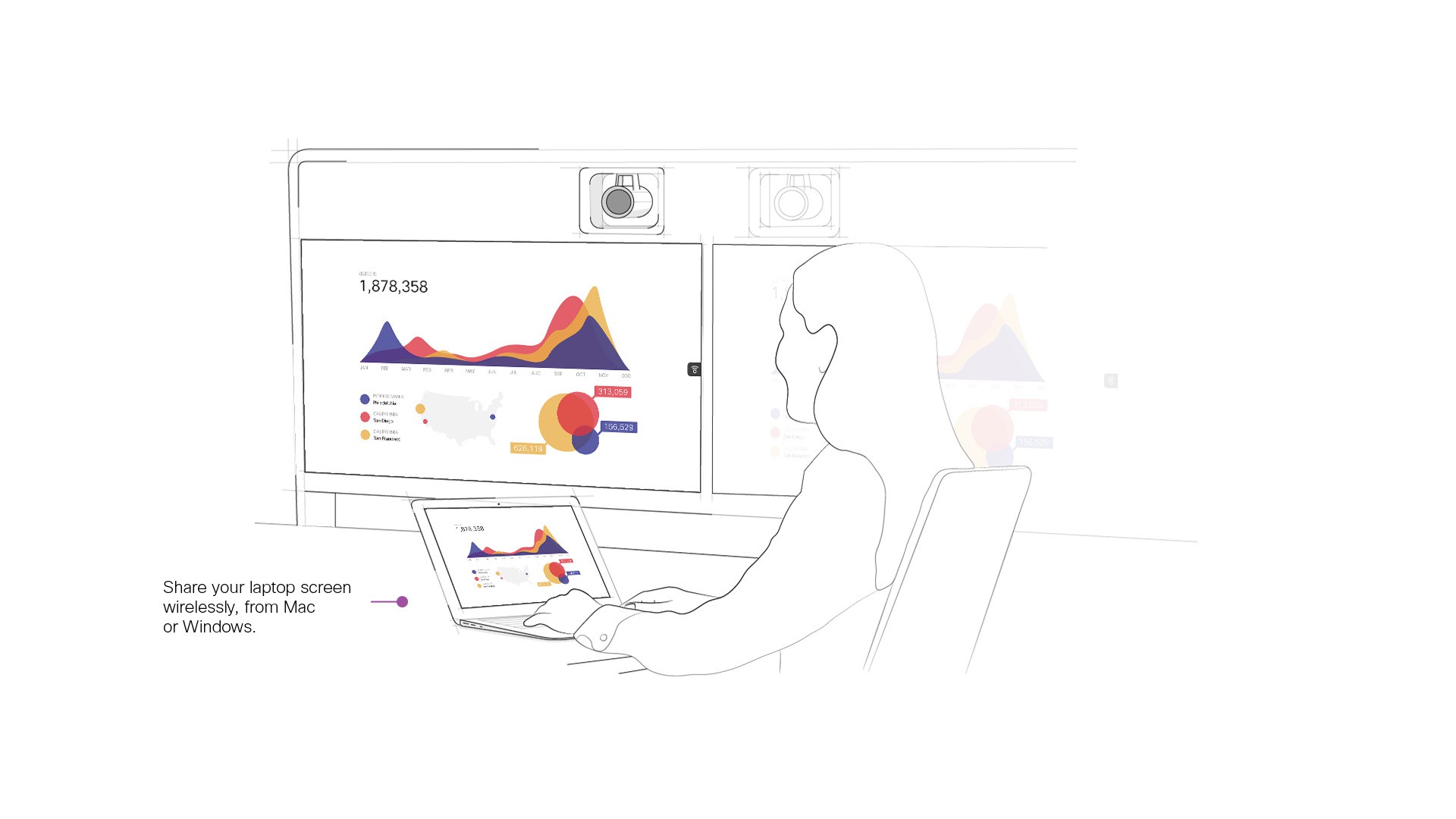 Cisco Intelligent Proximity を利用すると、VGA/DVI ケーブルなしに資料を共有・表示できます。これで「大事な会議で VGA 変換コネクタを忘れた!?」という事態を防ぐことができます。