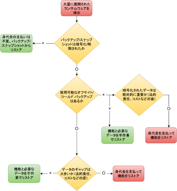| 図 14:ランサムウェアによる侵害が発生した場合、侵害された組織が身代金を支払うかどうかは、最終的にはこのフローチャートによって決まると考えられます。 |