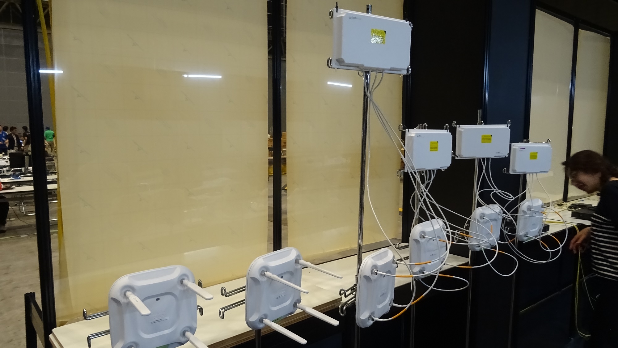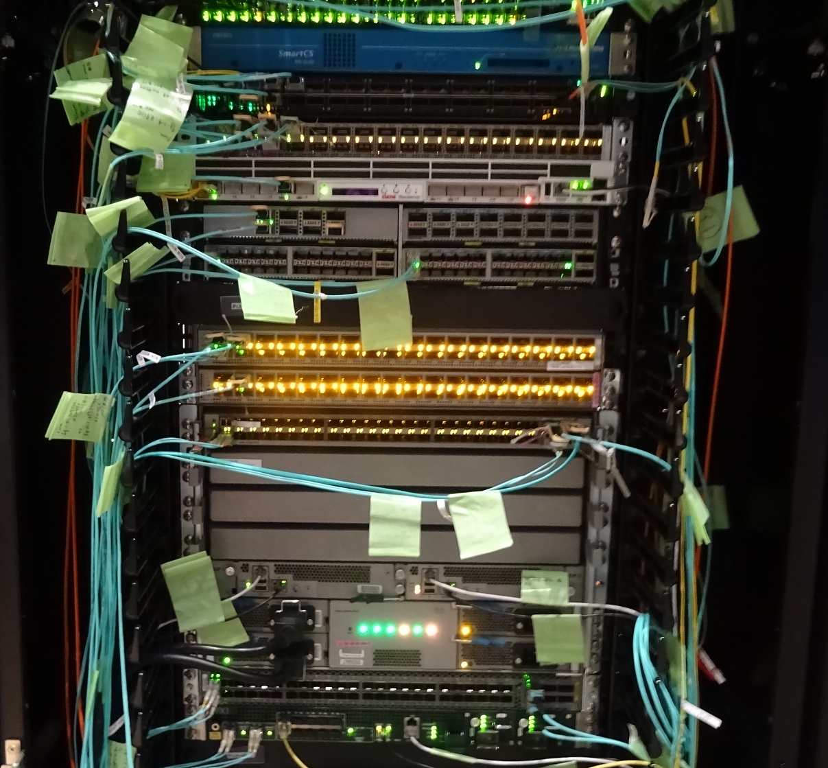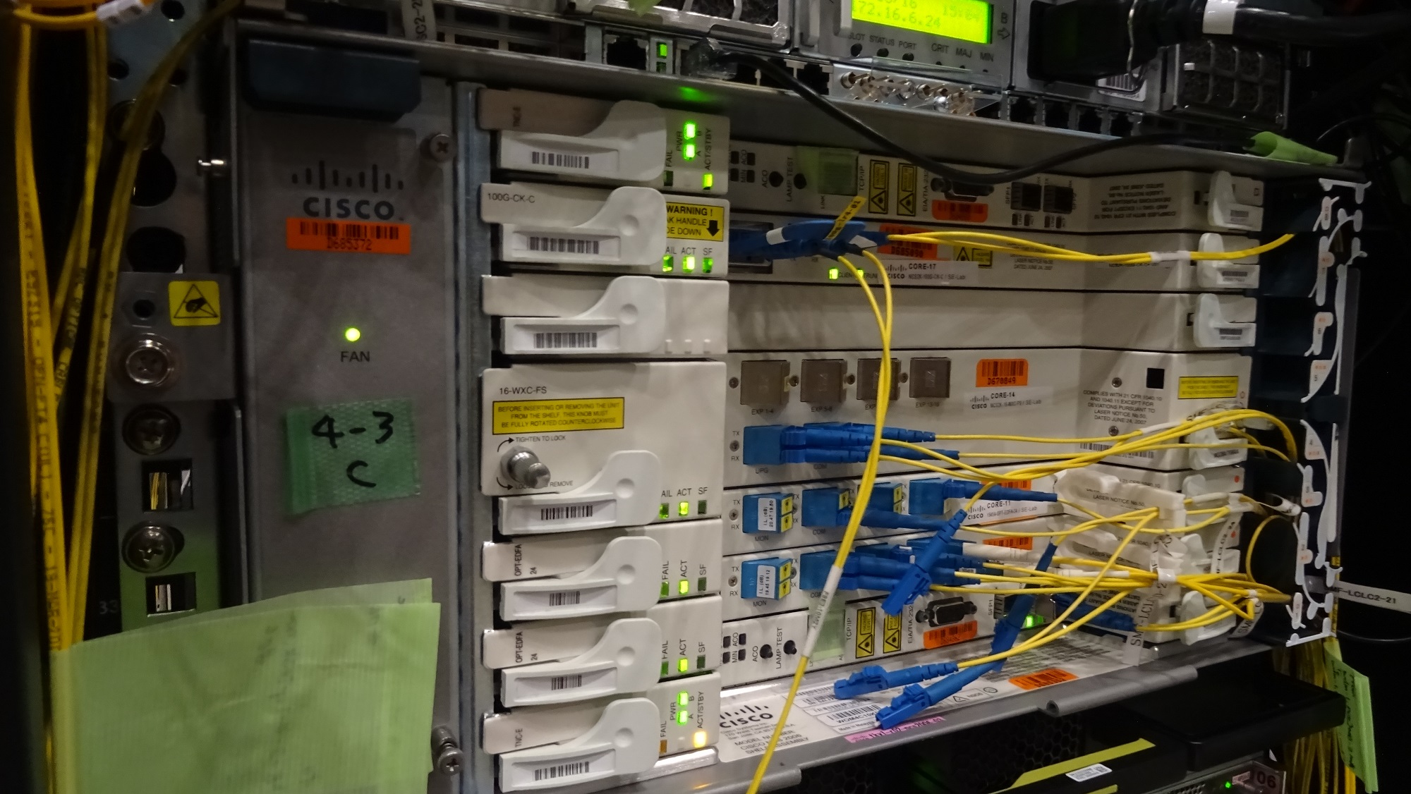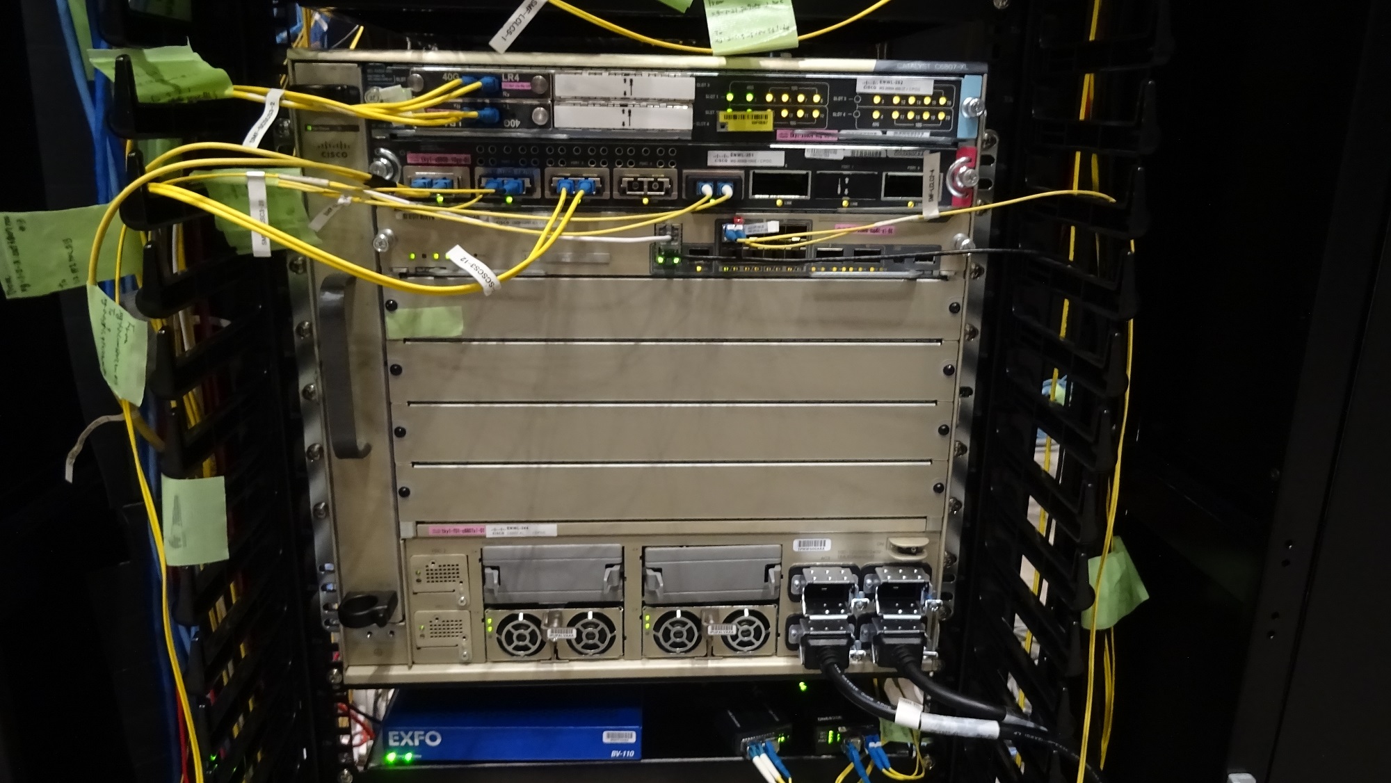 今年の ShowNet は、なんといっても、シスコから提供している 100Gbps インターフェイス提供数が 過去最多!(前年比:約2.6倍!)エクスターナル/コア/ディストリビューション/CGN/DWDM(高密度波長分割多重)に至るまで、あらゆる箇所が 100Gbps の広帯域ネットワークで接続されています! Yay!