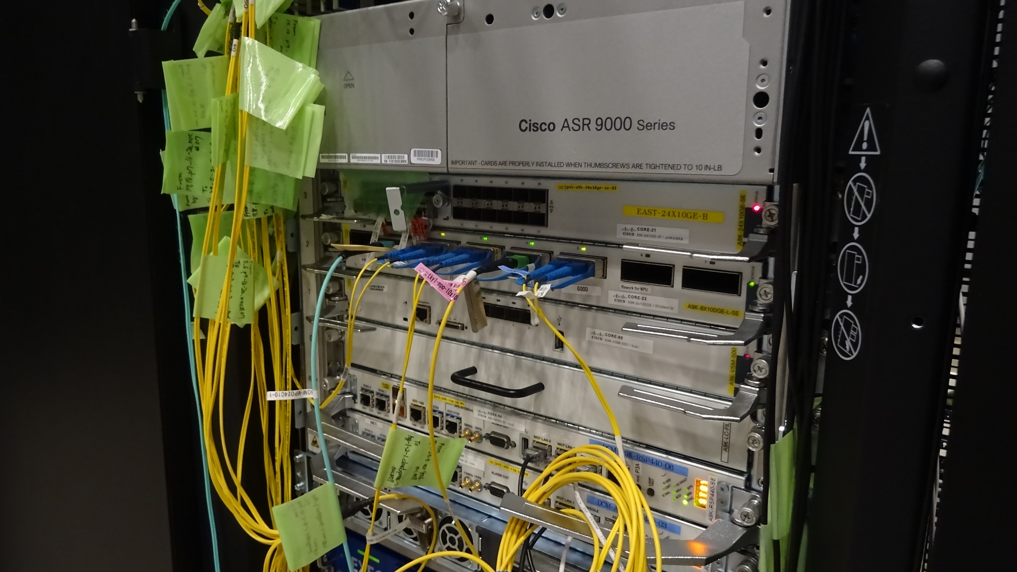 シスコから初めての提供となるのは、CGN(キャリアグレード NAT)で利用する機器です!Cisco ASR 1009X は、ShowNet のコア ネットワークとアクセスネットワークの間で CGN を実現しています。日本でも多くの導入実績を持つ Cisco ASR 1000 シリーズですが、新たに ASR 1009X が昨年リリースされ、これまで上位機種しか搭載できなかったハイパフォーマンスなモジュールの搭載が可能になりました。ShowNet では、100Gbps インターフェイスを搭載した 100Gbps CGN 機器として稼働しています。