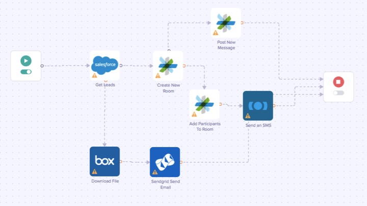 Cisco Spark の API には、いわゆる API/SDK だけでなく、ワンクリックで実行可能な「統合」やロジックも交えて連携できる「アプリ統合サービス」も利用できます。