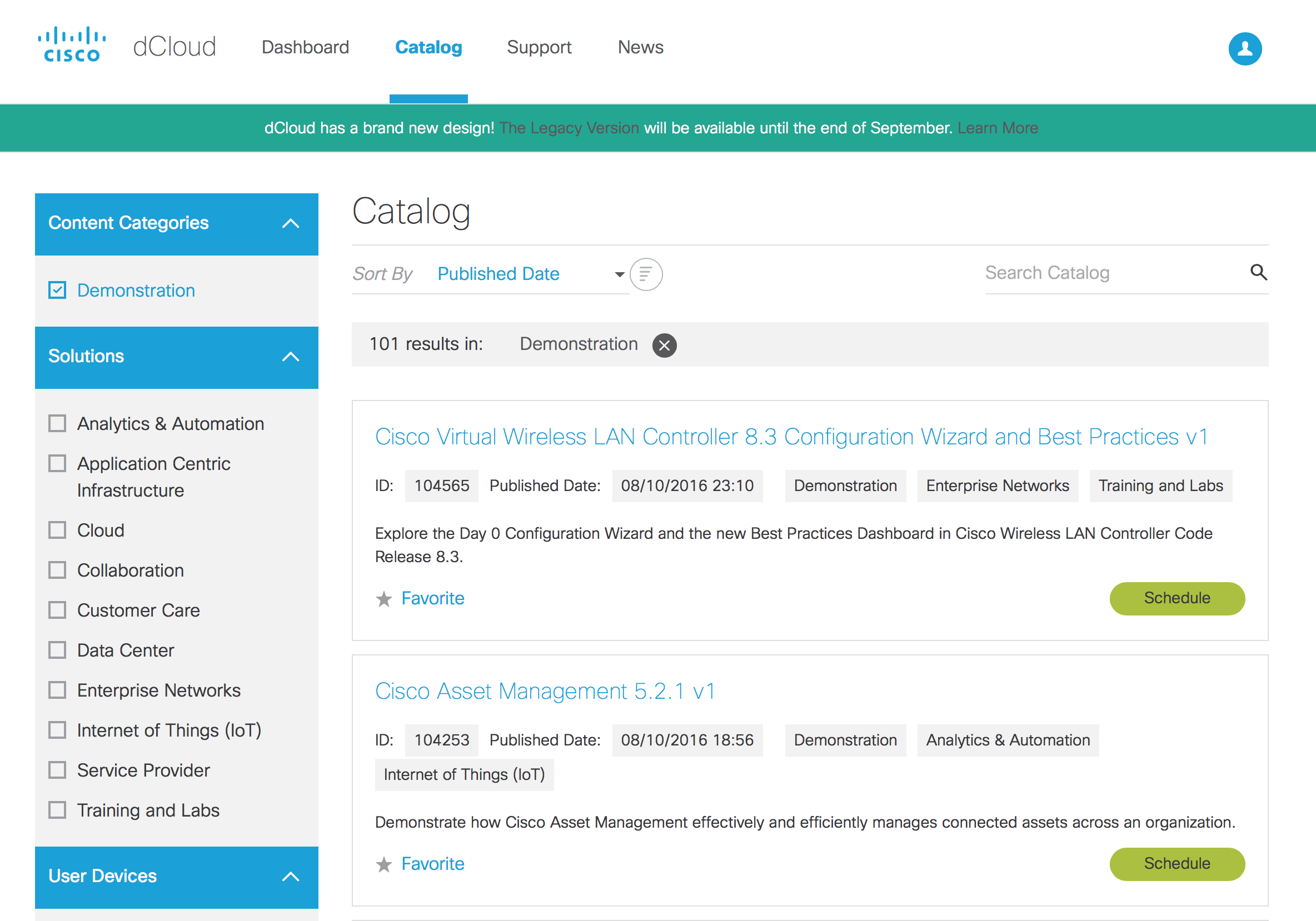 8月12日、シスコは Cisco dCloud v2.0 と呼ばれる新しい dCloud サイトをリリースしました。この新バージョンで提供されている多くの機能のなかから、検索とスマートデバイス対応をご紹介します。