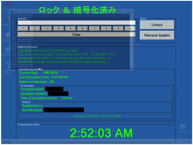 このランサムウェアが表示する身代金要求メッセージには、以下のビットコイン ウォレットが掲載されています。