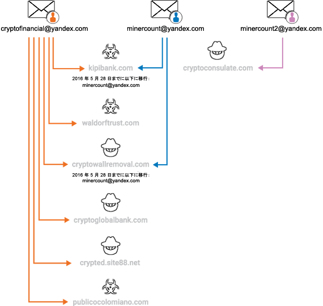 cryptowallremoval[.]com(minercount[@]yandex[.]com が所有、以前は cryptofinancial[@]yandex[.]com が所有)