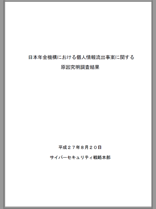 情報セキュリティインシデントと言えば、記憶に新しいのは2015年6月、日本年金機構が公表した約125万件の個人情報流出事案です。これは、日本の公的機関では過去に類を見ない規模の情報流出でした。かねてからの年金に対する国民の不信・不安もあり、マスコミにより大々的に報道されました。また 2015年12月には、ウクライナでサイバー攻撃が発端とされる停電が発生し、約8万の顧客への送電に影響が出たと報道されました。