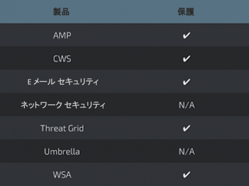下記の脅威関連情報は、すべてを網羅しているわけではないこと、また公開日の時点に限り最新のものであることに留意してください。脅威に対する検出とカバレッジは今後の脅威または脆弱性分析により更新される場合があります。最新の情報についてはFireSIGHT Management Center、Snort.org、または ClamAV.net を参照してください。