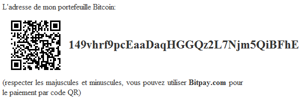 他にも、メール本文のスクリーンショットを貼り付けただけのケースもありました。言うまでも無く、これらのケースでは被害者側の手間が増えることになります。長くて複雑な Bitcoin ウォレットのアドレスをコピー/貼り付けできないからです。そこで支払いを容易にすべく、アドレスの QR コードを含めたメールまで登場しています。