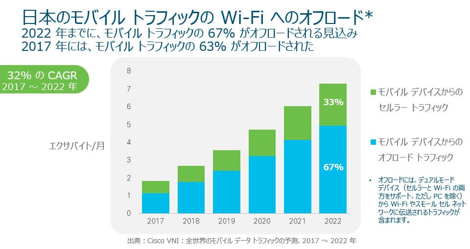 日本のモバイル トラフィックの Wi-Fi へのオフロード