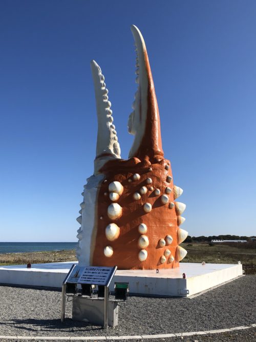 夏も終わり、東京も大分肌寒くなってきました。北海道のこの時期は紅葉がピークを迎え、山々が様々な色に染まります。また、食べ物も海の幸、山の幸共に美味しいものが多く、旅行にはうってつけの季節です。実際、降り立ったオホーツク紋別空港にはツアーで来たであろう方々が多くいらっしゃいました。また、道の駅では中国語が飛び交い、道東でも海外からの観光客の波が押し寄せているなと感じました。写真は昼食のために訪れた道の駅にそびえ立つ紋別市のシンボルです。「カニの爪のオブジェ」とは何ともオホーツク海に面した地域ならではだと思いませんか?