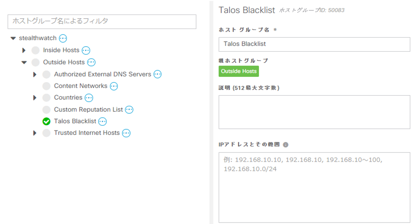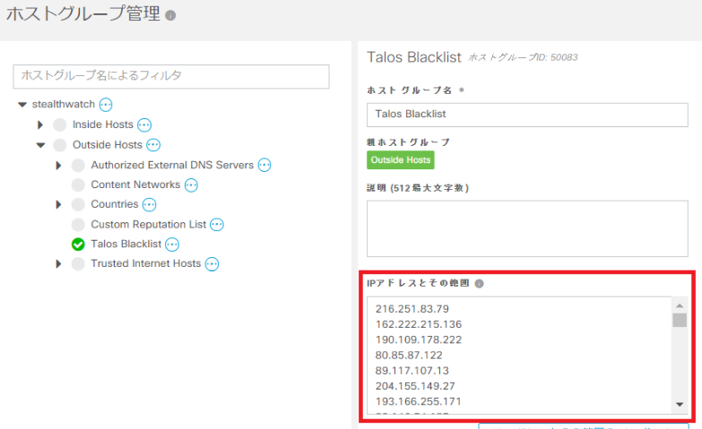 今回は、脅威インテリジェンス情報を提供する Cisco Talos が公開している IP のブラックリストをStealthwatch Enterprise のホストグループにインポートする API と、それらの IP と通信が発生すると検知させる設定例を紹介します。