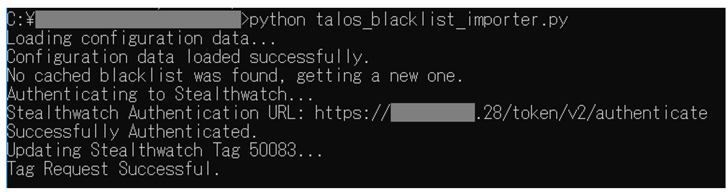 ここで、先の URL に掲載している “talos_blacklist_importer.py” スクリプトを実行してみます。