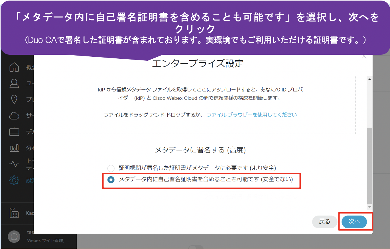 Duo Access Gatewayからダウンロードしたメタデータファイル