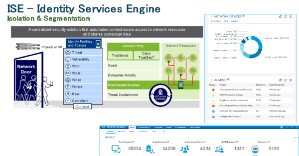 さらにISE (Identity Services Engine) により、TrustSec セキュリティ グループ タグを管理し、ネットワーク全体に一貫したポリシーを適用できるようになります。図 9-4-1 に Trust Sec と ISE の動作例、図 9-4-2 にISEの概要を示します。