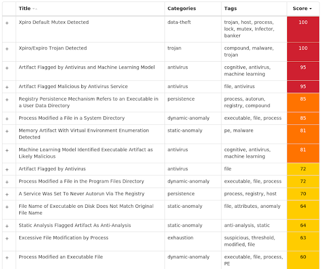 | Win.Virus.Xpiro-7646211-0 | ウイルス | Expiro は既知のファイルインフェクタで、情報窃取型ウィルスです。デバッグ回避と分析回避により分析を妨害します。 |