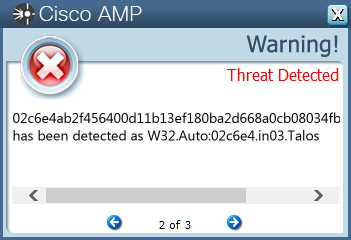 Cisco AMP for Endpoints は、さまざまなマルウェア機能からユーザを保護し、エクスプロイトを防止します。エクスプロイトの防止能力は、難読化されたマルウェアやエクスプロイトによって一般的に使用されるメモリ攻撃からエンドポイントを保護します。以下のエクスプロイトは特定の手口により一般的なウイルス検出を回避しますが、AMP の高度なスキャン能力により逃さずブロックし、ゼロデイの脆弱性からも保護できます。