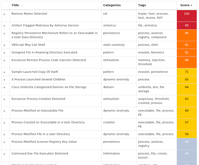 | Win.Dropper.Remcos-7647550-0 | ドロッパー | Remcos はリモートアクセスのトロイの木馬(RAT)です。感染したシステムでは、攻撃者によるコマンドの実行、キーストロークの記録、Web カメラの操作、スクリーンショットの取得が可能になります。マルウェアはマクロを含む Microsoft Office ドキュメントに隠されています。それらのドキュメントは通常、悪意のある電子メールで添付ファイルとして送付されます。 |