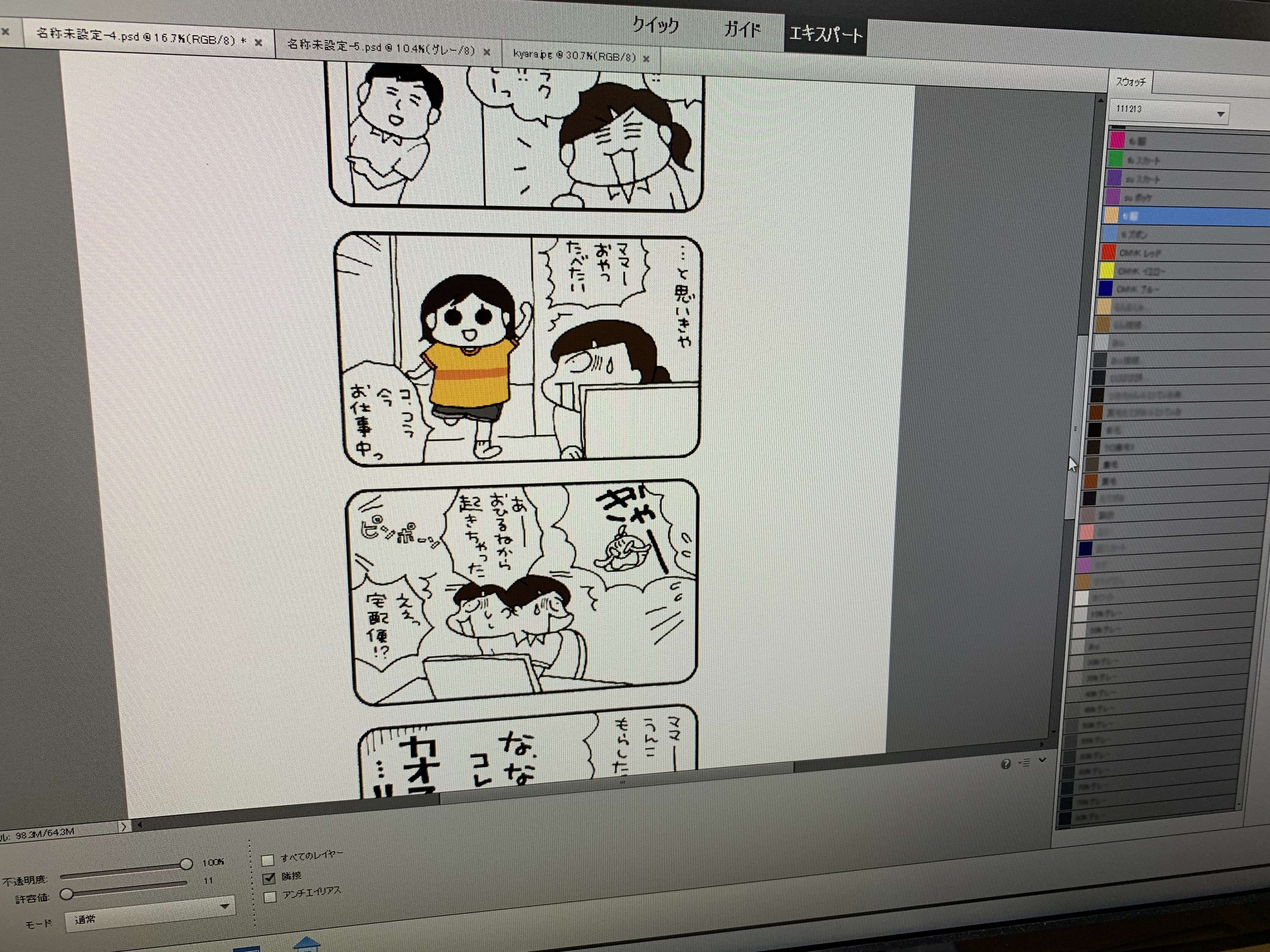 第一弾は「うちの3姉妹」の作者である松本ぷりっつさん(@3furlongpu)です。子育てと仕事の両立に奮闘する女性社員が主人公で、はじめてテレワークを導入された会社の社員たちの様子が描かれています。