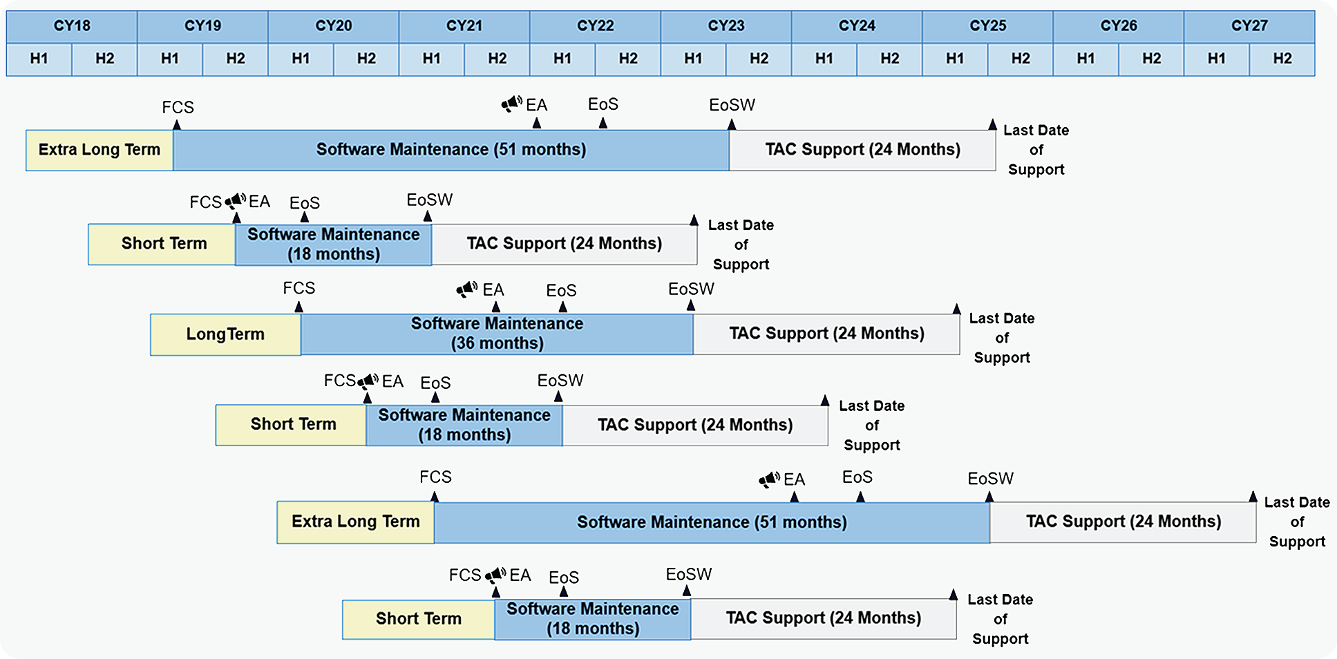 Firepower ソフトウェアバージョン 6.6は CY20 (2020年) H1 (前半) にリリースされており、”Long Term” サポートのソフトウェアです。毎年の後半にリリースされるソフトウェアに比べて、サポート期間が長くなっております。