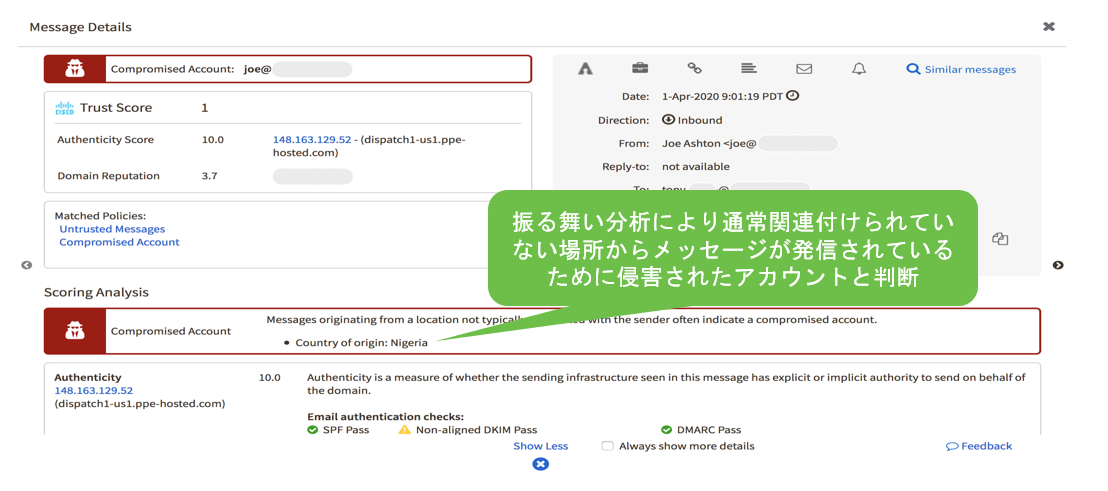図3 : Cisco Email SecurityによるEmailなりすまし対策