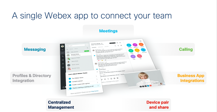 昨年、CiscoはWebex Teams unified app を発表し、通話、ミーティング、メッセージング、ビデオデバイスのコントロールを一つのアプリケーションに統合しました。もはや他社製のコネクターや接続サポートは必要ありません。