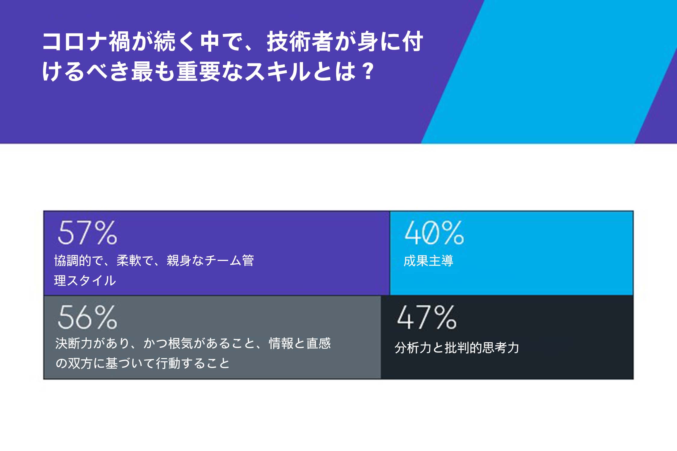 この点を裏付けるかのように、コロナ禍ではコラボレーション、分析的思考、成果主導型の意思決定といったスキルを技術者が最も重要視しています。