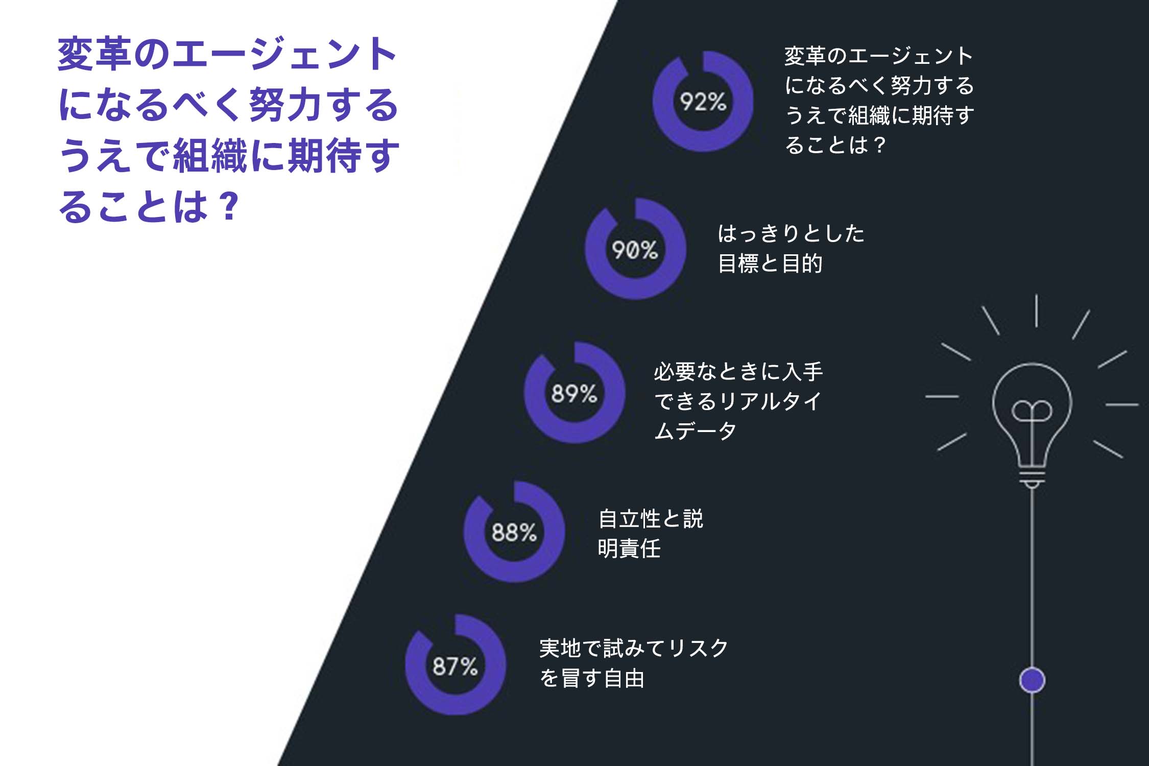 83% の技術者が、コロナ禍の影響からビジネスを迅速に立て直すには、変革のエージェントが不可欠であると考えています。