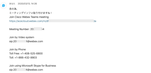 すると・・・、しばらくしてWebex Teamsスペース上にスケジュールが表示されます。