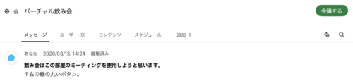 Webex Teamsに作成したスペースがオンラインパーティー専用のスペースなので、Webex Meetingsで個別に会議を作成することなく、このスペース付属の会議室を使うことにしました。