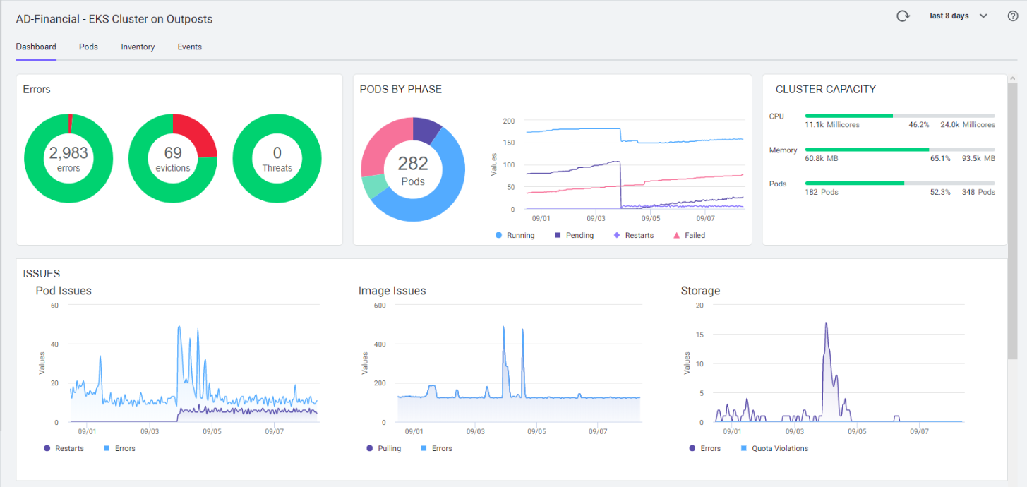 また、AppDynamics が提供する詳細な情報により、お客様のインフラストラクチャが AWS ハイブリッドクラウド全体にわたってアプリケーションパフォーマンスを完全にサポートできているかどうかを確認できます。Amazon EC2 でレガシーワークロードを運用する場合や、Amazon EKS 内で最新のワークロードを実行する場合は、サーバインスタンス、データベース、ネットワークのパフォーマンスも可視化できます。