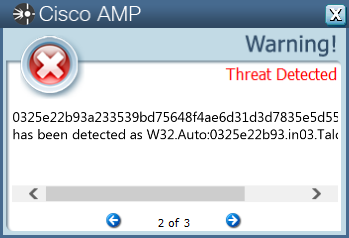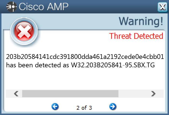 Cisco AMP for Endpoints は、さまざまなマルウェア機能からユーザを保護し、エクスプロイトを防止します。エクスプロイトの防止能力は、難読化されたマルウェアやエクスプロイトによって一般的に使用されるメモリ攻撃からエンドポイントを保護します。以下のエクスプロイトは特定の手口により一般的なウイルス検出を回避しますが、AMP の高度なスキャン能力により逃さずブロックし、ゼロデイの脆弱性からも保護できます。