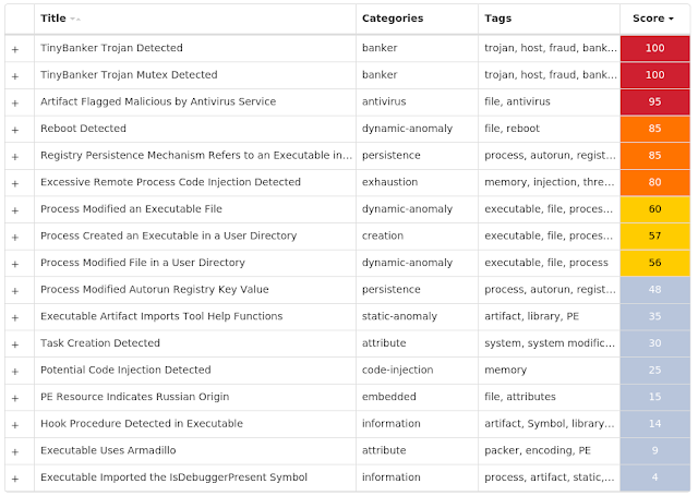 | Win.Dropper.TinyBanker-9787441-1 | ドロッパー | TinyBanker は Zusy や Tinba としても知られるトロイの木馬で、中間者攻撃(MITM)により銀行情報を窃取します。実行されると、「explorer.exe」や「winver.exe」などの正当な Windows プロセスに自身を挿入します。ユーザが銀行の Web サイトにアクセスすると、個人情報の入力を促す偽のフォームを表示します。 |