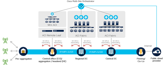 ACI は、5G のユースケースに求められるリアルタイムな処理・応答に向けた Mobile Edge Computing (MEC)の実現をサポートする機能である「Remote Leaf」 を提供しています。