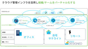 社内外のメンバーを柔軟に編成し、どこからでも働ける環境と共に、オフィスではそこでしかできない環境を整え、それらをクルっとクラウドマネージドで対応する、このような手法が最適なカタチとなります。