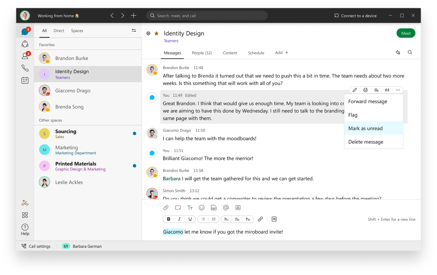自分のスタイルで働くために便利な Webex のオプションが増え、重要なメッセージを未読化できるようになりました。簡単なリマインダとして、後で参照したりフォローアップしたりするために利用できます。