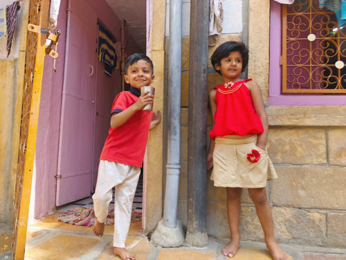 インドでの写真。同じ色の服を着ていた兄弟、可愛くて思わずパシャリ。インドはカラフルな色で溢れていました。